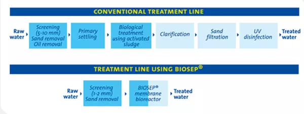 Biosep® is a membranes bioreactor developed by Veolia. It is an activated sludge process in which membranes provide the clarification.