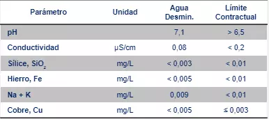 El desempeño alcanzado, en cuanto a la calidad del agua fresca comprometida con el cliente, se resume en la tabla siguiente: