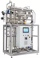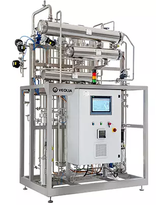 Diseñada para la industria farmacéutica y aplicaciones biotecnológicas, tiene una capacidad de producción de 250 hasta 4.500 l/h de WFI suponiendo 8 barg de vapor industrial disponible in situ.