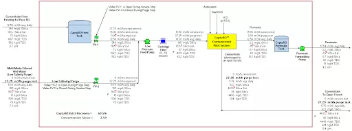 A tecnologia CaptuRO™ é um sistema de osmose reversa de alta recuperação que possui um conjunto de membranas de estágio único. Pode haver um número variável de membranas por vaso, dependendo da vazão e características da água. Quando em operação, o conjunto de membranas recupera entre 45% e 55% da água que entra no conjunto (a recuperação "por turno"). No entanto, ao utilizar a reciclagem interna de concentrado, o sistema alcançará uma alta recuperação, dependendo do ponto de ajuste do operador.